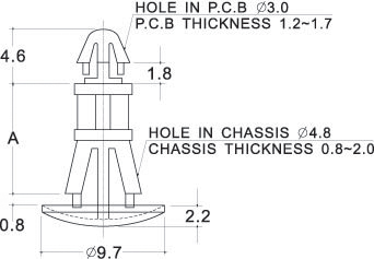 用途:固定于PC板于机板上,不会突出机板底部,外观美丽。