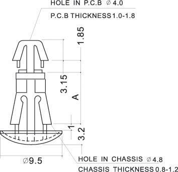 用途:固定于PC板于机板上,不会突出机板底部,外观美丽。