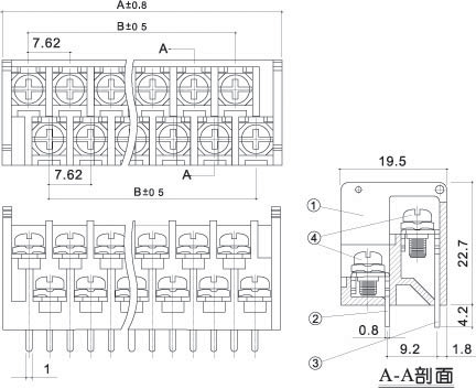 | B | 7.62 | 15.2 | 22.9 | 30.5 | 38.1 | 45.7 | 53.3 | 61.0 | 68.6 | 76.2 | 83.8 | 91.4 | 99.1 | 106.7 | |