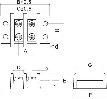 | CDM-25 | 300V | 25A | 11 | 11x(P+1)+9 | 11x(P+1) | 9 | 14 | 28 | 21 | 10.5 | 8 | 4.5 |
